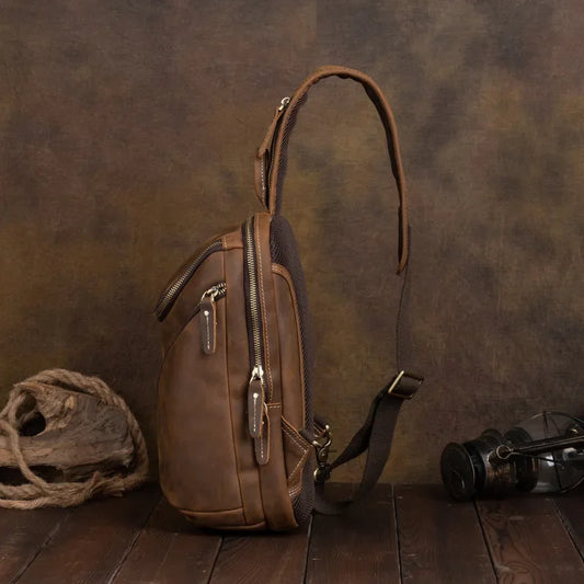 Arthur: Retro Crazy Horse Leather Chest Bag for Timeless Style